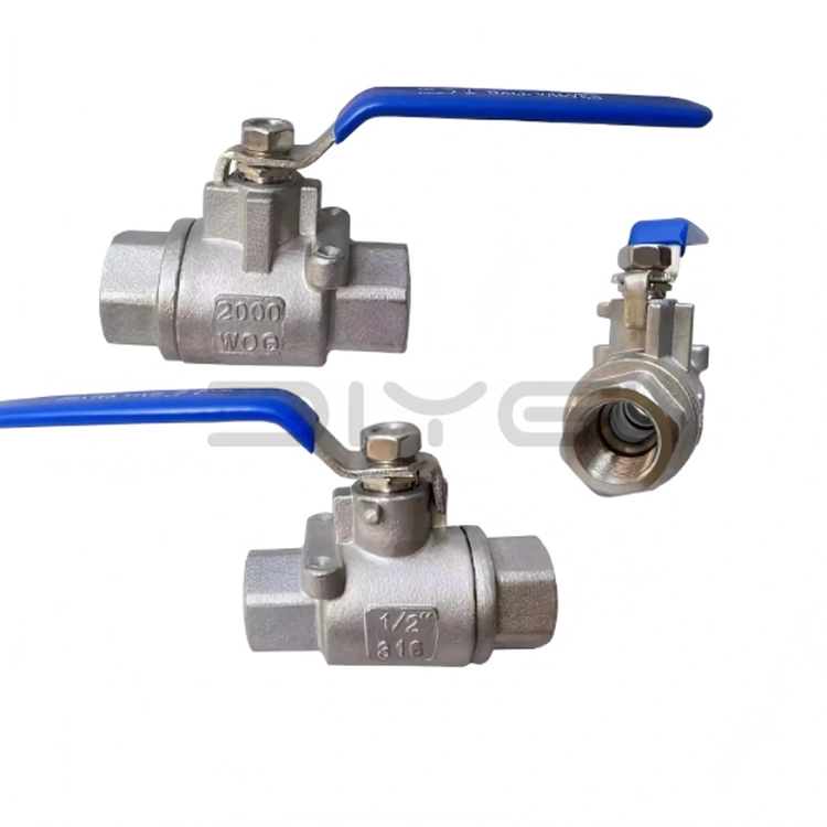 Ang DIYE VALVE 2PC Threaded Ball Valve 2000WOG, mass-produced, ay isang versatile na industrial-grade fluid control valve na may mahusay na pressure resistance. Angkop para sa medium at high-pressure na pipeline application, malawak itong ginagamit sa mga industriyal na larangan na humahawak sa iba't ibang conventional media tulad ng tubig, langis, at gas, na nagbibigay ng mahusay, maaasahan, at maginhawang fluid on/off control solution para sa mga proyekto sa buong mundo. Ang buong proseso ng produksyon ng balbula na ito ay nakumpleto sa loob ng bahay, mula sa pagpili ng hilaw na materyal hanggang sa natapos na inspeksyon ng produkto, na tinitiyak ang pare-pareho at matatag na kalidad ng produkto.
