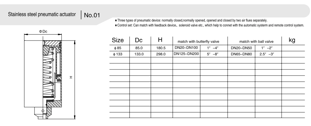 Q: Anong mga uri ng pneumatic actuator ang available para sa sanitary pneumatic butterfly valve at paano pipiliin ang mga ito?