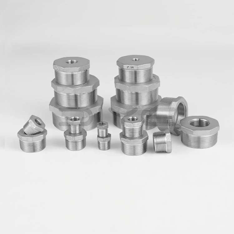 Ang Stainless Steel Hex Bushings ay gawa sa mataas na kalidad na SS304 (CF8) at SS316 (CF8M) na hindi kinakalawang na asero, na nagtataglay ng mahusay na paglaban sa kaagnasan, pag-iwas sa kalawang, at paglaban sa sukat. Nilalabanan nila ang kaagnasan mula sa mga acid, alkalis, at iba't ibang kemikal, na pumipigil sa pagkasira ng materyal at pagkasira ng pagganap sa ilalim ng malupit na mga kondisyon sa pagtatrabaho, pagpapahaba ng buhay ng produkto, at pagbabawas ng mga gastos sa pagpapalit at pagpapanatili.